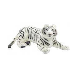 Ce Tigre Blanc en position couché d'un format 100 cm de longueur va impressionner petits et grands par sa taille, sa ressemblance et sa douceur. Il sera difficile de résister à une sieste ou un câlin avec lui. Idéal comme cadeau ou décoration de chambre. La peluche Anima Hansa est synonyme d'excelle