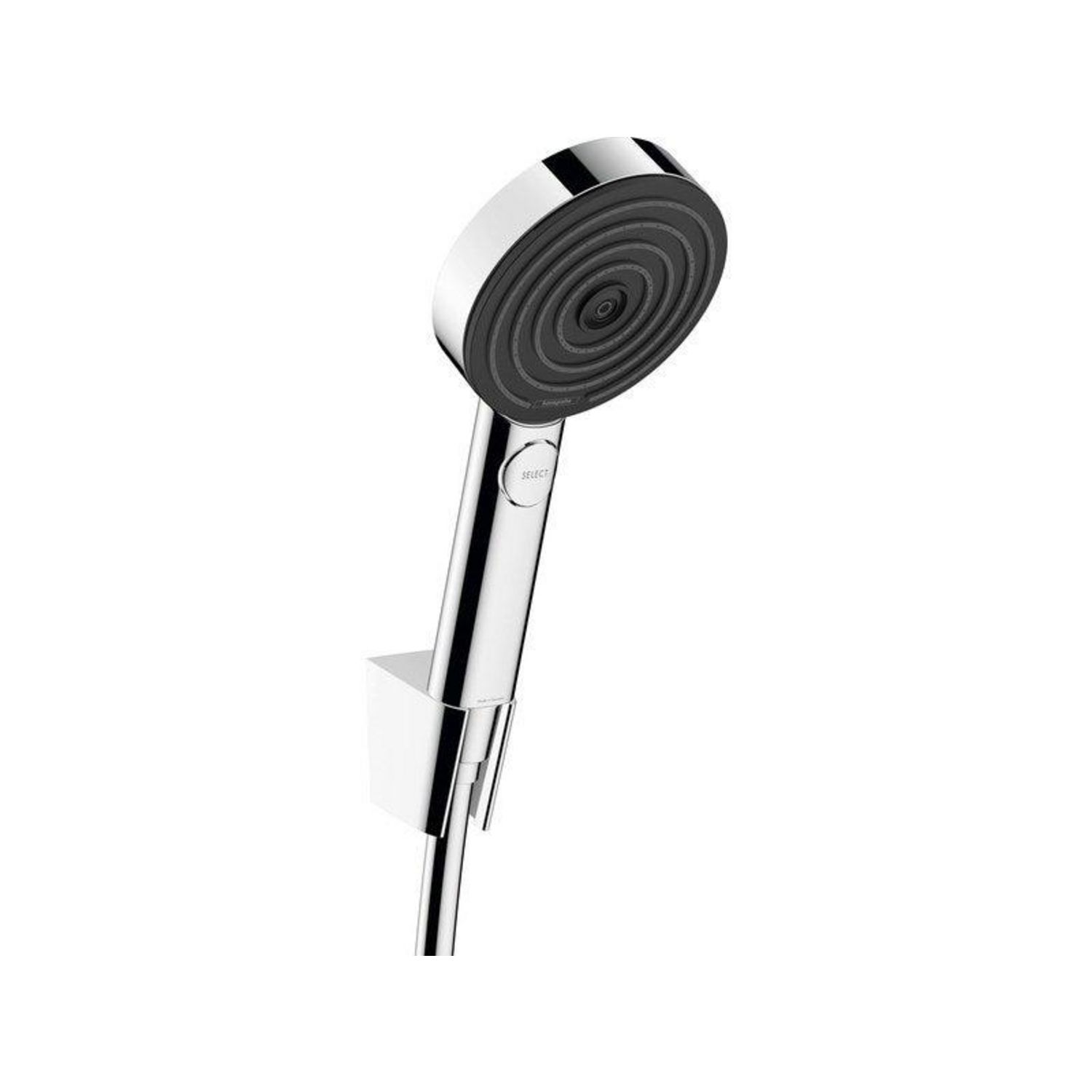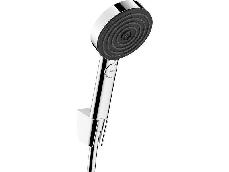 Pommeau de douche 3 jets, flexible et support, HANSGROHE Pulsify chrome