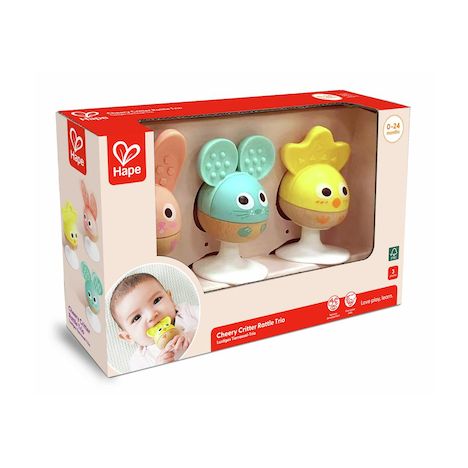 Trois adorables hochets sur le thème des animaux avec des couleurs douces et pastel et des sons uniques qui captivent et stimulent les bébés. Fabriqués en bois et en silicone, ces hochets sont adaptés aux petites mains et favorisent la motricité et le développement sensoriel. Ces charmants compagnons attirent les bébés grâce à leurs grandes oreilles en silicone qui peuvent également soulager les poussées dentaires. Les ventouses permettent de jouer facilement n'importe où.