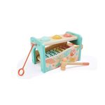 Votre tout-petit encourage sa motricité fine en martelant ce joli banc sur le thème de la jungle. En tombant, les boules de couleur pastel se mettront à tinter sur le xylophone. Le xylophone peut aussi être utilisé de manière autonome. Ce jeu favorise la dextérité, la coordination ?il-main et la manipulation.