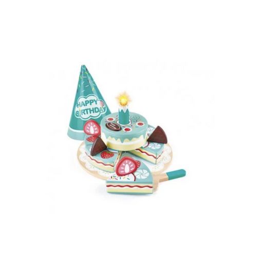 En savoir +Fêtez les anniversaires avec le gâteau d'anniversaire interactif de Hape, conçu pour les enfants à partir de 3 ans. Ce gâteau en bois est parfait pour les jeux de dinette et offre une expérience ludique. Équipé d'effets sonores amusants, il comprend une bougie à souffler pour déclencher des applaudissements. Avec six parts de gâteau, garni de fraises et de gaufres, ce jeu stimulera l'imagination de votre enfant et rendra chaque anniversaire spécial.