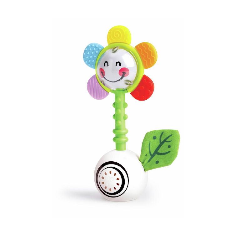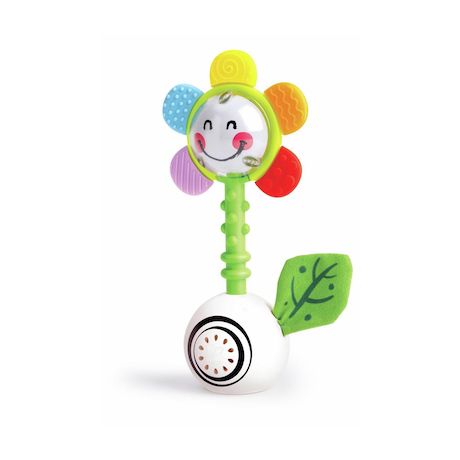 Illuminez le temps de jeu de votre bébé avec notre hochet fleur musical. Agitez-le pour voir des lumières vibrantes et entendre des sons de hochet apaisants, parfaits pour l'exploration sensorielle. Les pétales en silicone souple et le motif souriant captivent et enchantent, tandis que la forme faci