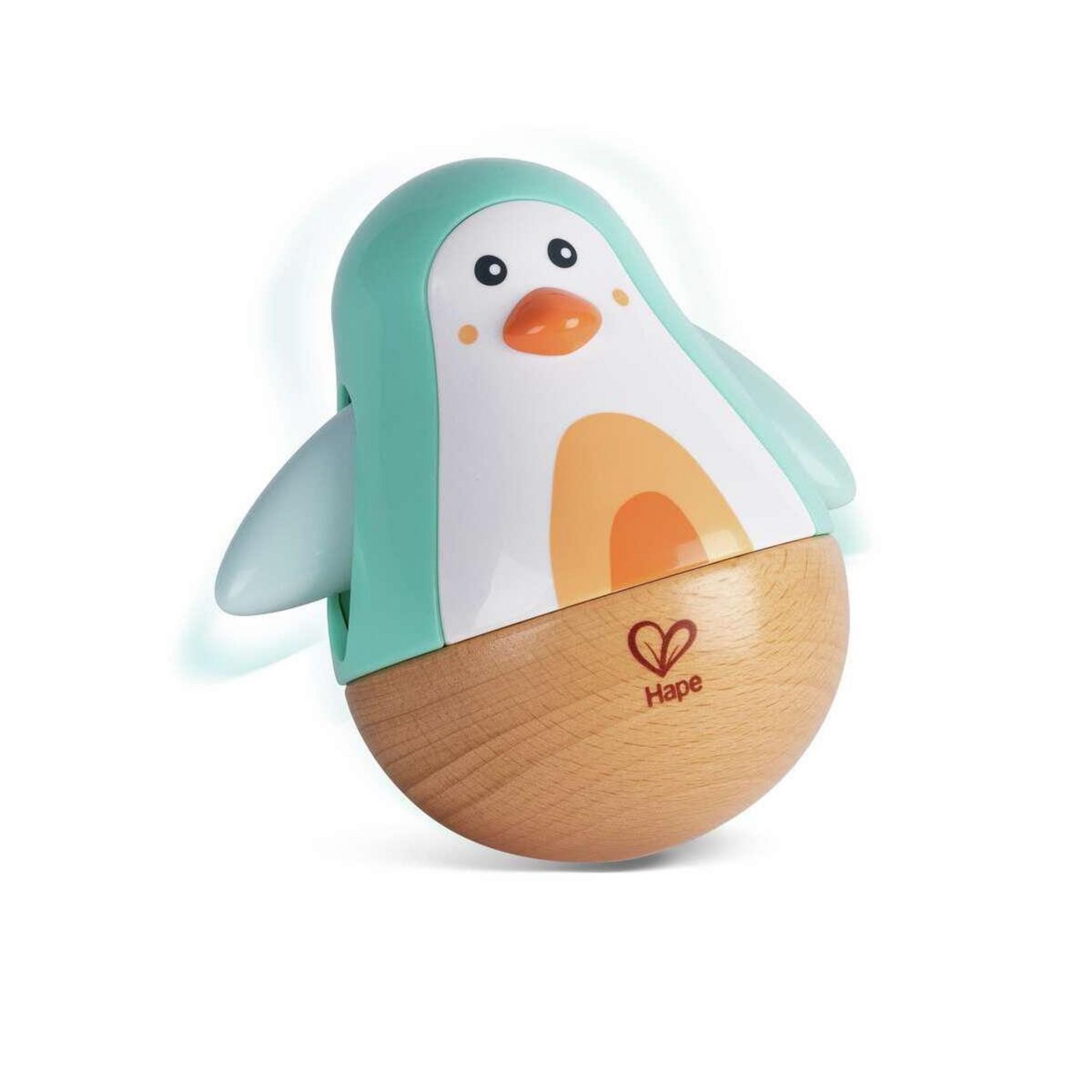 Grâce au pingouin culbuto turquoise, les enfants peuvent explorer les sons, ils seront ravis de voir ce pingouin qui tinte doucement se dandiner de manière rigolote. Il invite les bébés à marcher à quatre pattes pour tenter de l'attraper et stimule les sens à travers les sons et les mouvements. Impo