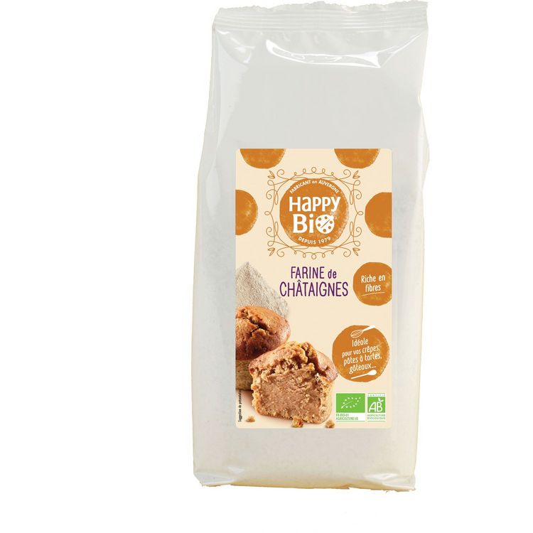 Farine de châtaignes issue de l’agriculture biologique Elle s’associe très bien avec le chocolat,le miel ou la cannelle.Riche en fibres