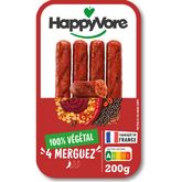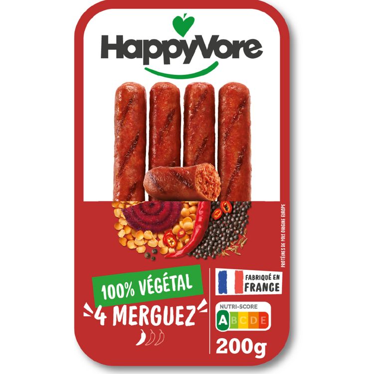 - Les Merguez végétales HappyVore mettent tout le monde d'accord. Épicées et gourmandes, elles sont idéales avec des frites maison, en couscous ou accompagnées de légumes rôtis.