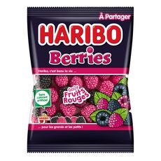 En forme de mûres et framboises les Berries HARIBO vont vous faire fondre avec leur cœur tout tendre enduit de perles de sucre rouge et noir. Une expérience croustillante et croquante ultra fruitée qui ravira les papilles des petits comme des grands !