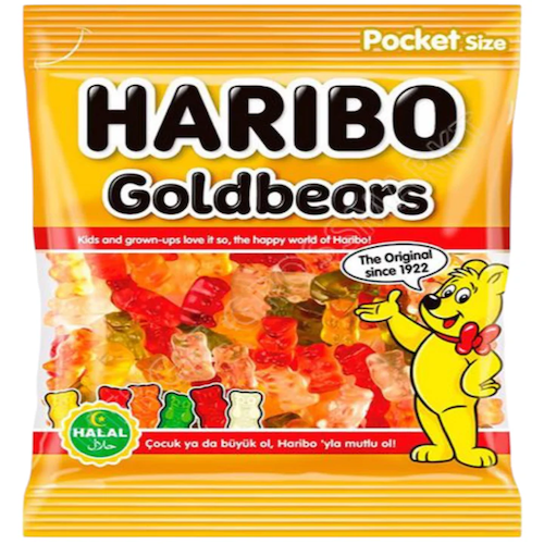 Sirop de glucose, sucre, dextrose , gélatine bovine halal, acidifiants, acide citrique, concentre de fruits pomme,fraise,framboise,orange,citron,ananas ,cassis,mangue, agents d enrobage, cire d abeille blanche et jaune, cire de carnauba