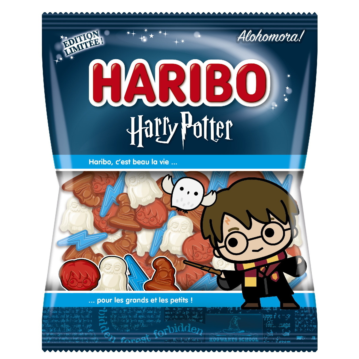 Venez découvrir en édition limitée le sachet 160g HARIBO Harry Potter et ses bonbons magiques aux goûts ensorcelants : Barbe à papa, Sorbet citron, Caramel, Cola, Pomme et Cerise.