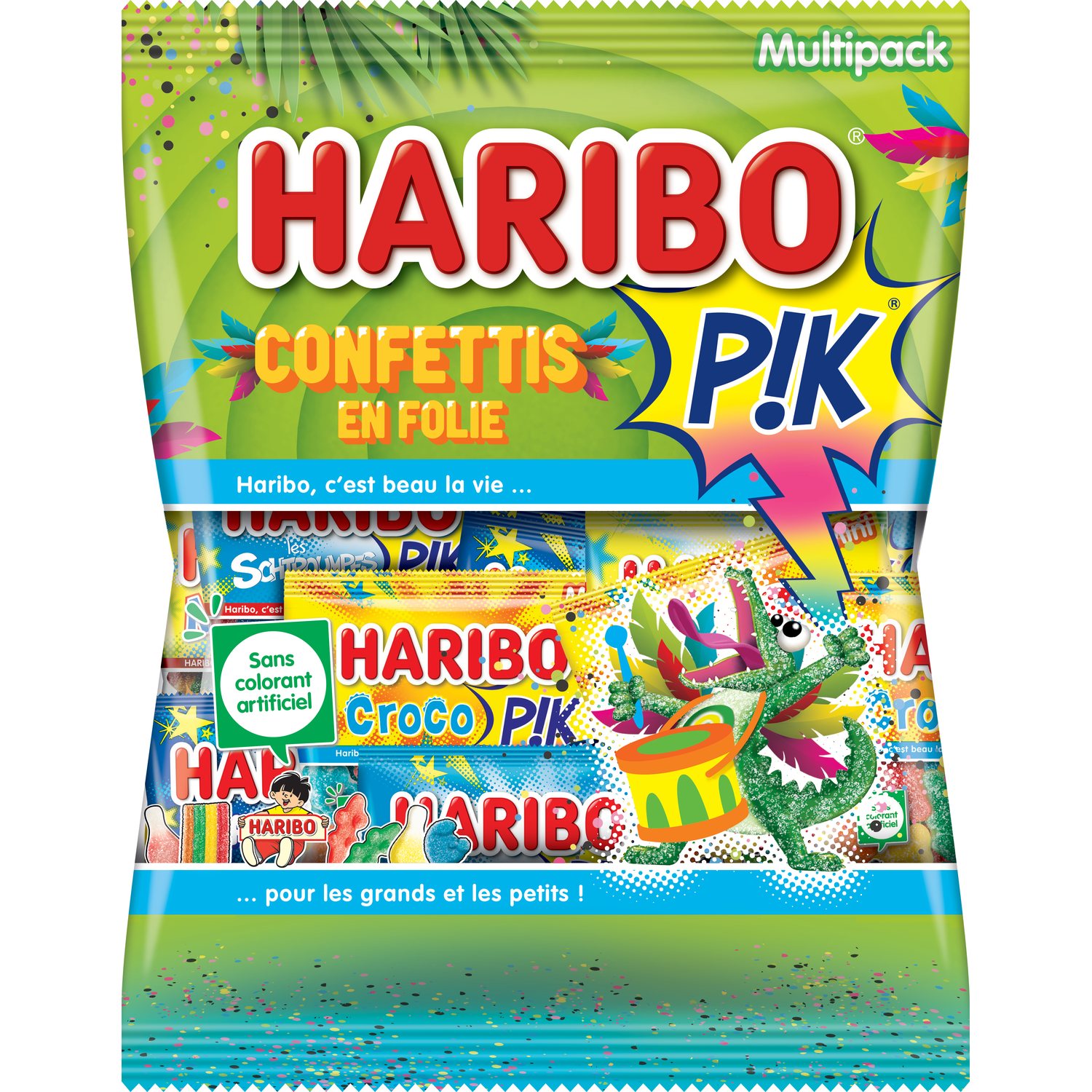 Célébrez le Carnaval avec le multipack HARIBO P!K Carnaval en Folie en édition limitée contenant un assortiment de vos HARIBO P!K préférés en format mini sachets. Sans colorant artificiel.