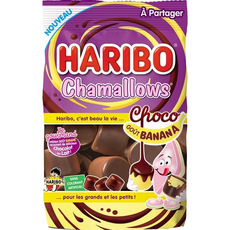 La recette originale Chamallows Choco avec un cœur banane irresistible CONFISERIE GUIMAUVE GOÛT BANANE ENROBÉE DE 46 % DE CHOCO