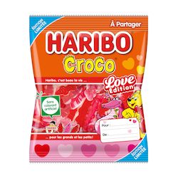 Nos bonbons iconiques passent en mode Love. Découvrez le sachet Croco Love en édition limitée pour la Saint Valentin : un mélange de Croco rouges et roses avec un nouveau goût exclusif ! Sans colorant artificiel.