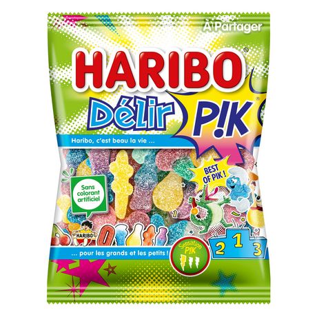 HARIBO Delir PIK, c'est un mélange de vos bonbons HARIBO PIK préférés dans un même sachet pour encore plus de sensations. Ils sont sans colorant artificiel.