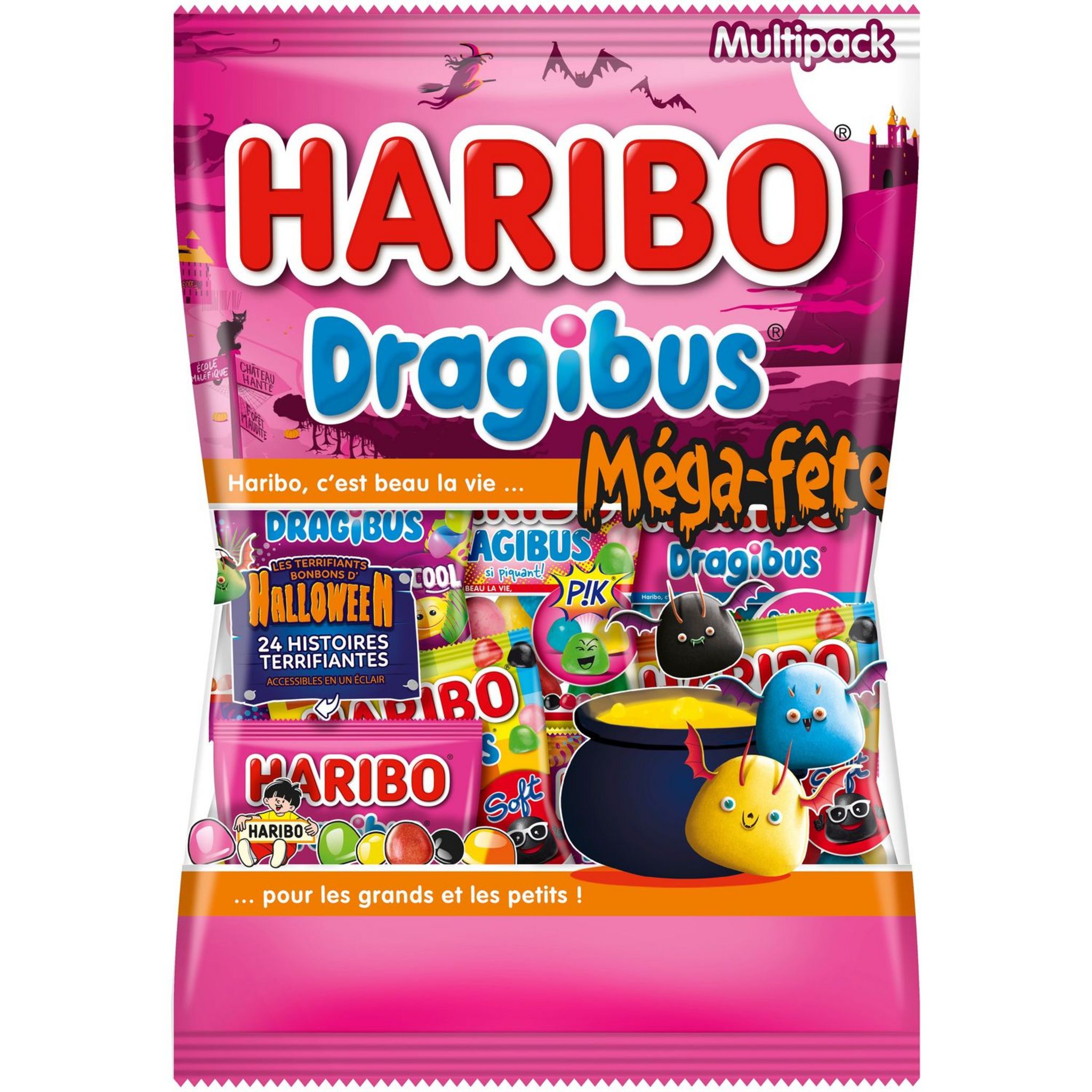 L'inimitable Dragibus en format exclusif Halloween ! Un lot exclusif de tous les incontournables Dragibus pour la chasse aux bonbons d'Halloween : * 8 mini-sachets de Dragibus Soft * 4 mini-sachets de Dragibus Soft Pik * 8 mini-sachets Dragibus * 4 mini-sachets Dragibus Bi-cool CONFISERIE DRAGÉIFIÉE
