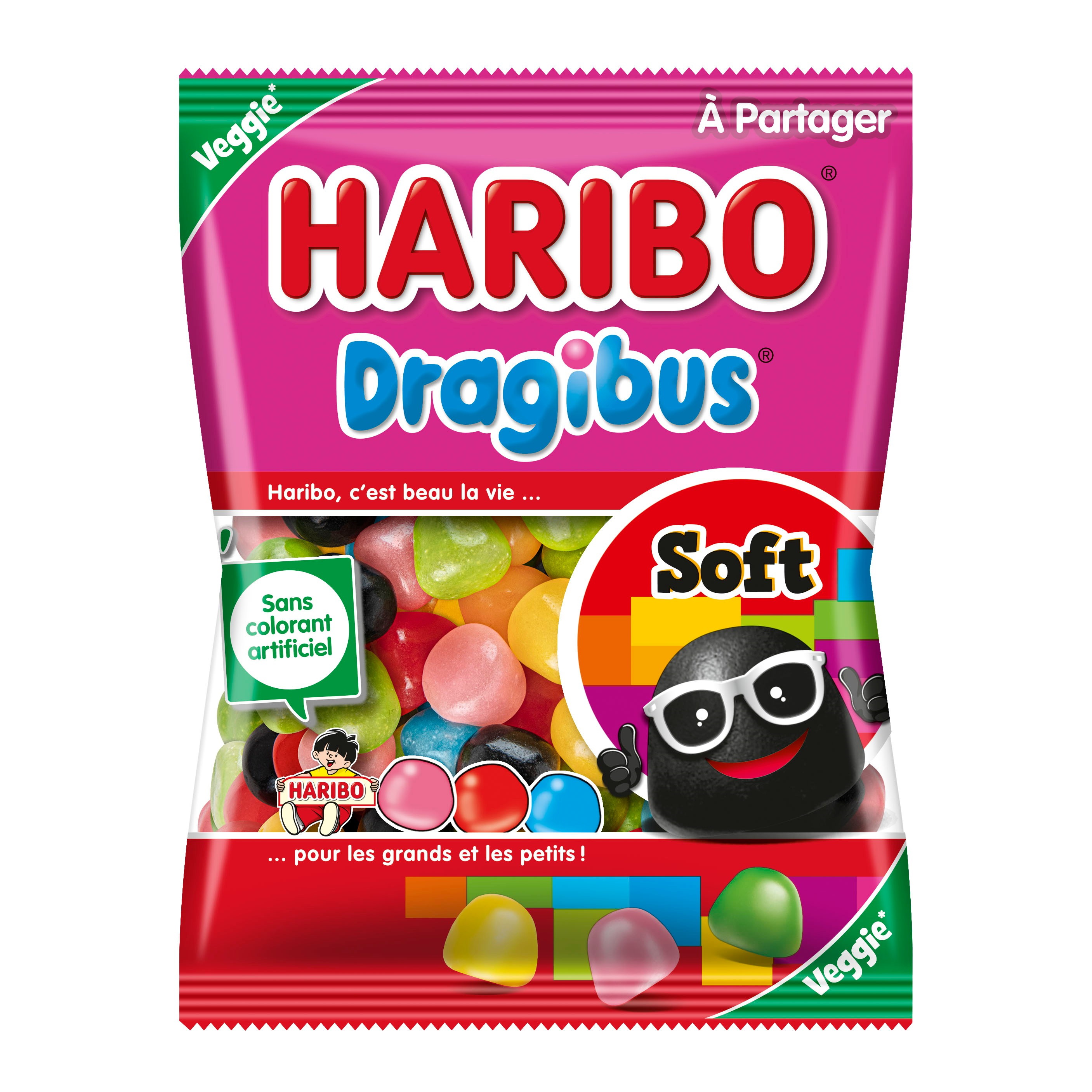 HARIBO Dragibus Soft vous propose une version XL du bonbon Haribo Dragibus Original pour encore plus de gourmandise ! HARIBO Dragibus Soft est veggie, il convient aussi aux végétariens.