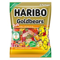 Ingrédients: sirop de glucose; jus de fruits concentrés: pomme, framboise, citron, pêche, cerise, orange, banane; sucre; gélatine; dextrose; acidifiant: acide citrique; concentrés de fruits et de plantes: carthame, spiruline, pomme, baie de sureau, cassis, orange, kiwi, aronie, raisin, citron; extrait de baie de sureau; arôme; agents d'enrobage: cire d'abeille blanche et jaune, cire de carnauba. Tenir à l'abri de la chaleur et de l'humidité. Peut contenir des traces de blé, lait.