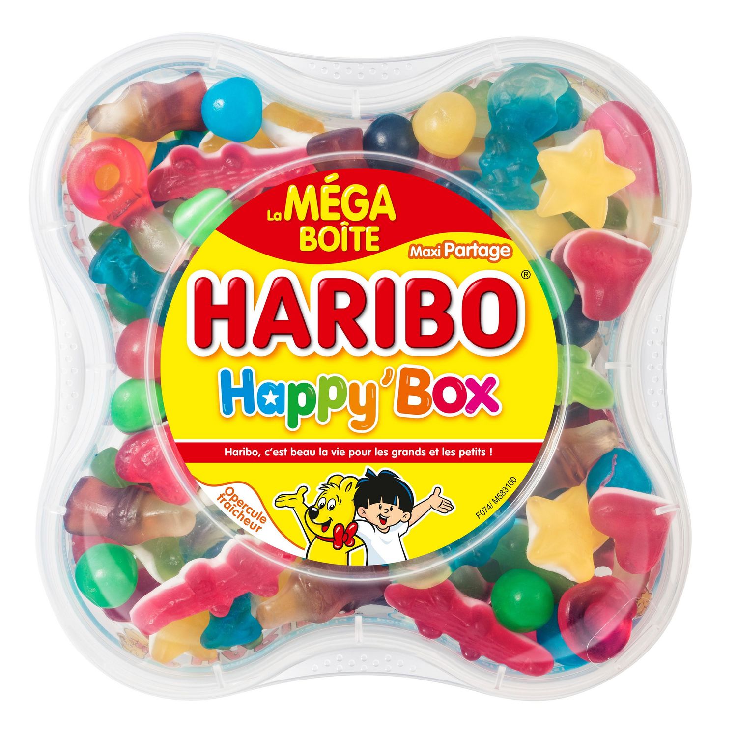 Retrouvez beaucoup de variété et tous vos bonbons préférés dans cette boîte : Schtroumpfs, Happy Cola, Croco, Dragibus, Tétines, Ours d'or, Floppie's, cœurs et étoiles.