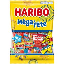 sirop de glucose; sucre; gélatine; dextrose; amidon; sirop de sucre mélassé; farine de BLÉ; amidon de BLÉ; acidifiants: acide citrique, acide malique; extrait de réglisse; maltodextrine; sel; graisse de palme; LACTOSE; protéines du LAIT; humectant: sirop de sorbitol, sorbitol; correcteurs d'acidité: citrate tricalcique, malate acide de sodium, citrate monosodique, citrate trisodique, carbonate acide de sodium; concentrés de fruits et de plantes: citron, orange, pomme, kiwi, baie de sureau, cassis, aronie, raisin, fruit de la passion, mangue, carthame, spiruline, hibiscus, radis, patate douce, cerise; extrait de baie de sureau; arôme; émulsifiant: mono- et diglycérides d'acides gras; jus de fruits concentrés: pomme, orange, citron, fraise, framboise, ananas, cerise; colorants: curcumine, carmins, BLEu patenté V, charbon végétal, carotènes végétaux, lutéine, anthocyanes; agents d'enrobage: cire d'abeille blanche et jaune, cire de carnauba; sirop de caramel; extrait de fruit (caroube); sirop de sucre inverti.