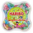 Ingrédients: sirop de glucose; sucre; gélatine; dextrose; acidifiants: acide citrique, acide malique; agent d'enrobage: cire de carnauba; correcteurs d'acidité: citrate tricalcique, malate acide de sodium; arôme; concentrés de fruits et de plantes: citron, carthame, patate douce, cerise, pomme, radis, spiruline, carotte, cassis, hibiscus; sirop de sucre inverti; colorants: bleu patenté V, charbon végétal, carotènes végétaux, lutéine, anthocyanes. Tenir à l'abri de la chaleur et de l'humidité.