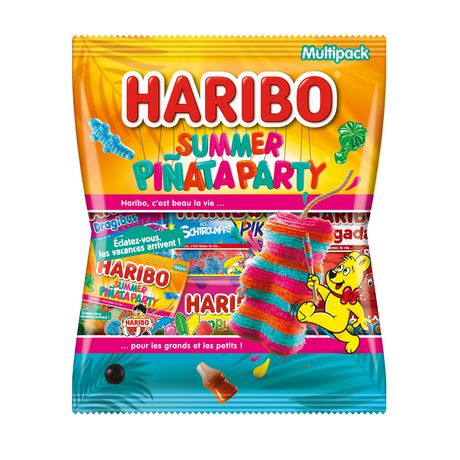 Fêtez l'arrivée de l'été avec le multipack HARIBO Summer Piñata Party en édition limitée contenant un assortiment de vos bonbons HARIBO préférés et des bonbons aux formes estivales, en format mini sachets. Sans colorant artificiel.