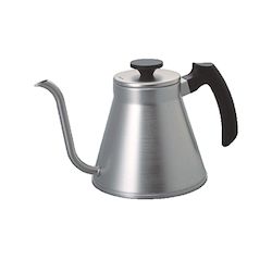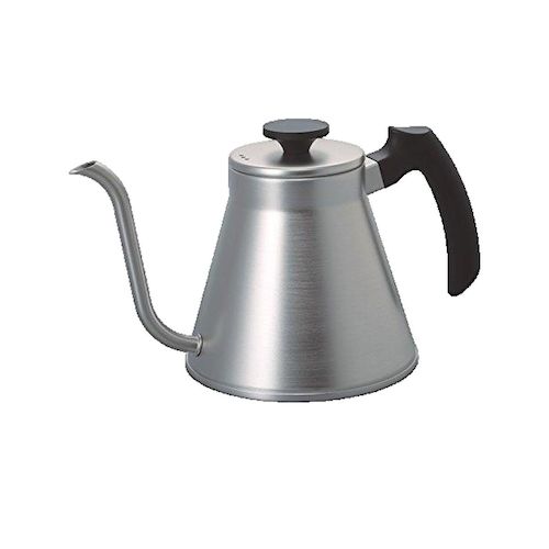 Découvrez la bouilloire Hario V60 Fit, conçue spécialement pour les amateurs de café. Sa capacité totale de 1,2 litre permet de préparer plusieurs tasses à la fois, avec une capacité utile de 800 ml. Fabriquée en acier inoxydable avec une finition argentée, elle s'intègre harmonieusement dans votre