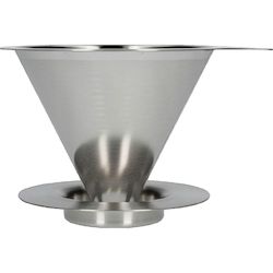 Découvrez le dripper V60-02 de la marque Hario, conçu en acier inoxydable pour une durabilité et une facilité de nettoyage exceptionnelles. Ce dripper métallique argenté permet une préparation optimale du café sans nécessiter de filtres en papier, grâce à sa conception innovante. Léger et portable,