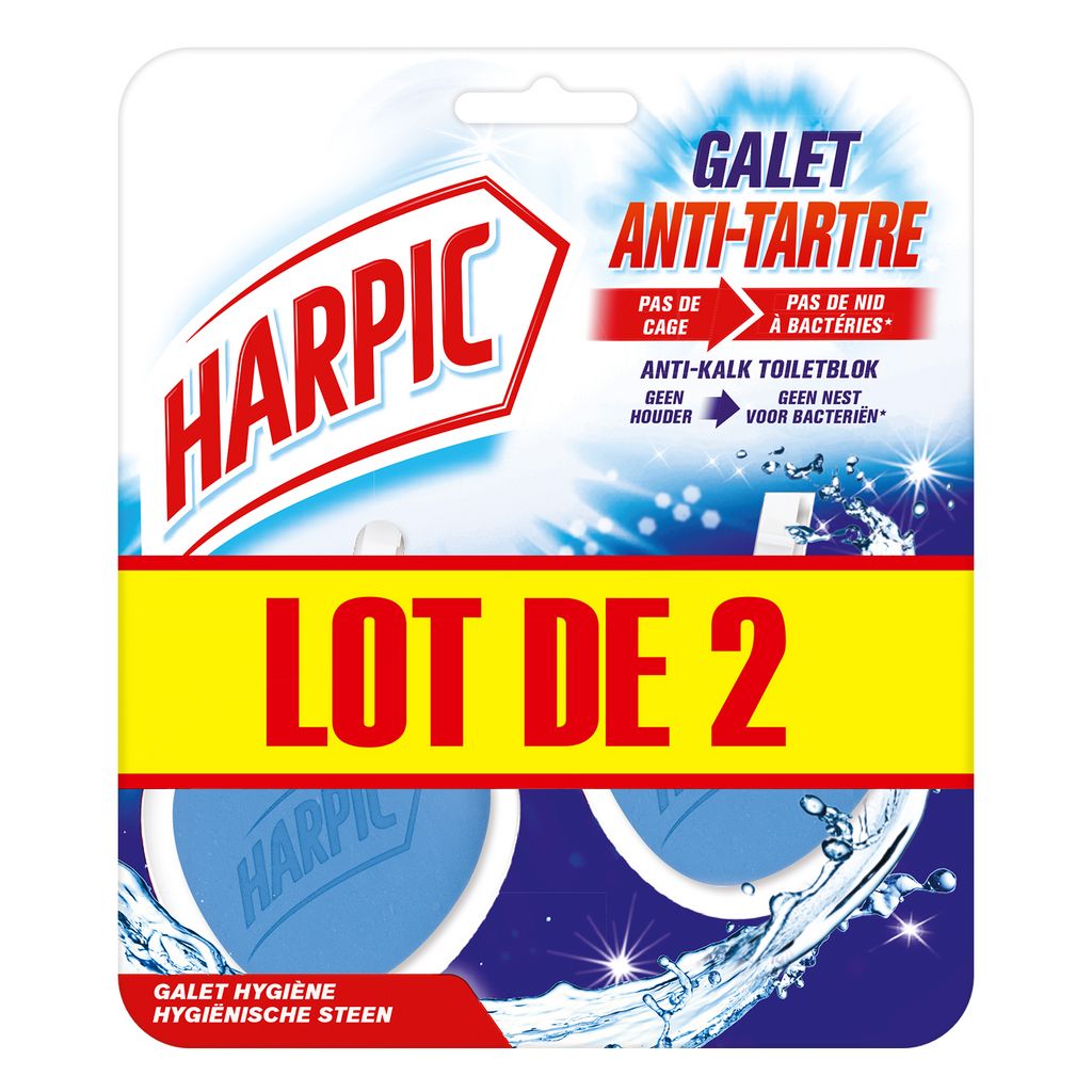 Blocs Cuvette Galet hygiène anti-tartre Lot de 2 Prévient la formation du tartre tout en garantissant une hygiène maximale grâce à son design sans cage.