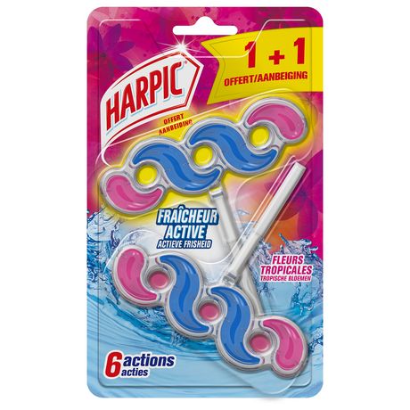 Harpic Bloc cuvette Active Fresh Fleurs tropicales vous permet de garder une hygiène et un éclat irréprochable dans vos toilettes ! Harpic Bloc Active Fresh Fleurs Tropicales 1+1 Gratuit