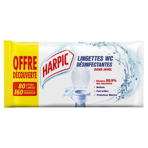 Harpic lingette désinfectante WC marine x80 offre découverte