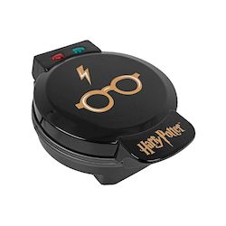 Découvrez le Gaufrier Uncanny Brands Harry Potter avec le design unique des lunettes et du symbole de l'éclair. Cet appareil sous licence officielle Warner permet de préparer facilement des gaufres magiques chez vous. Puissance de 850 W, revêtement antiadhésif pour un nettoyage simple, structure en