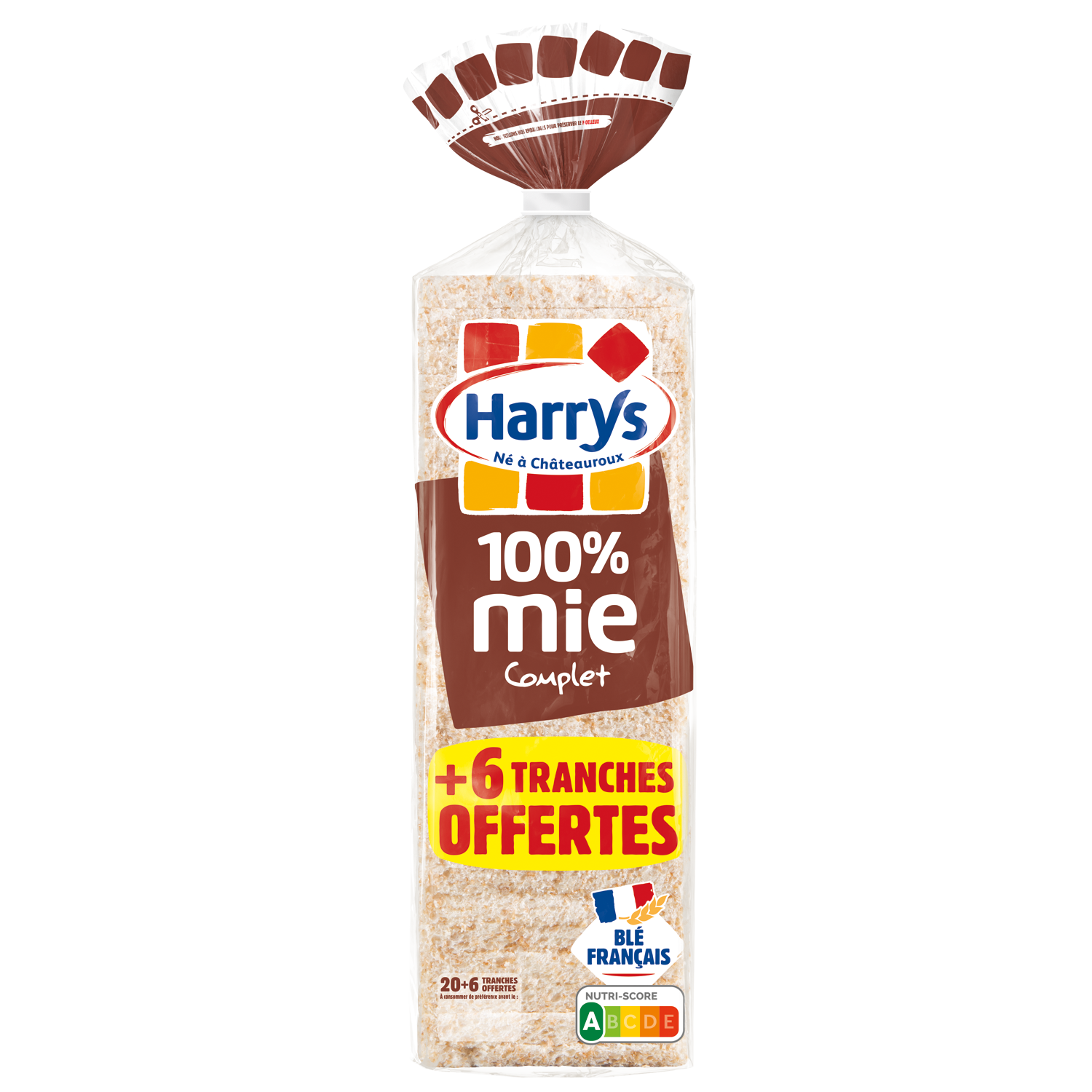 Découvrez 100% Mie Complet ! Une nouvelle recette sans croute, élaborée à partir de farine complète de blé, source de fibres et de sucres lents pour vous procurer l'énergie nécessaire ! Pourquoi c’est bon ? Parce que 100% Mie Complet plaît à tous et allie : • La douceur et le moelleux inimitables de Harrys • La richesse d'un pain de mie aux céréales • Une recette sans huile de palme et bien sûr sans croûte À déguster nature ou toasté pour accompagner un petit déjeuner équilibré ! C'est aussi le pain de mie idéal pour la réalisation de sandwichs savoureux.
