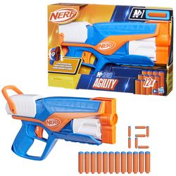 [Cet avis a été recueilli en réponse à une offre.] Nerf blasters N séries agility avec barillet rotatif,incluant 12 fléchettes, très léger poignée d'amorçage dans le barillet on peut mettre 6 fléchettes . Mon fils a adoré bien sûr à jouer à l'extérieur, super puissances de tir mettre des lunettes de protection pour plus de sécurité, je recommande c'est un très bon produit