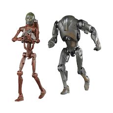 Découvrez le pack de figurines Black Series de la marque Hasbro, un ensemble emblématique de l'univers Star Wars. Ce pack inclut la figurine C-3PO avec un corps de droïde de bataille B1 ainsi qu'un Super Battle Droid. Chaque figurine mesure 15 cm et est finement détaillée, fidèle à l'apparence des f