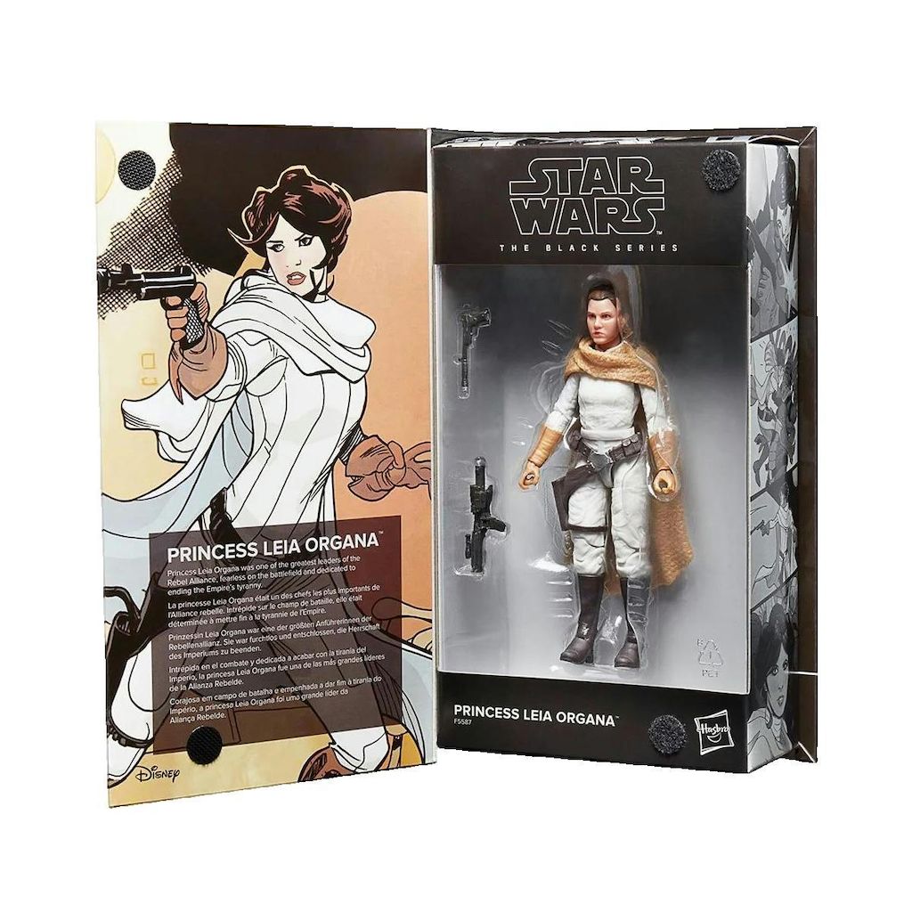 Découvrez la figurine d'action Princesse Leia Organa de la collection Black Series de Hasbro. Cette figurine articulée de 15 cm, fabriquée en PVC, offre des finitions de haute qualité et des détails soignés. Parfaite pour les collectionneurs et les fans de Star Wars, elle permet de recréer des poses