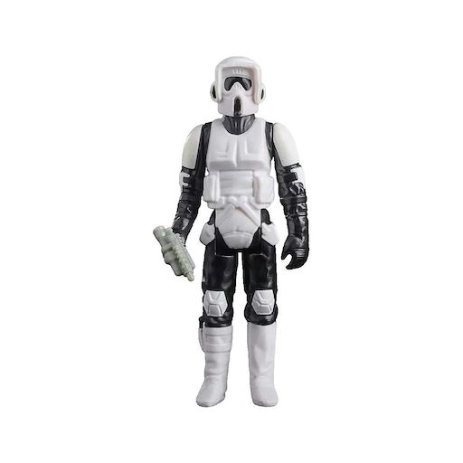 Découvrez la figurine Biker Scout de Hasbro, inspirée du film Star Wars : Le retour du Jedi. Cette figurine articulée en plastique de haute qualité mesure 9,5 cm et présente des détails fidèles au personnage, principalement en noir et blanc. Elle est livrée avec un accessoire blaster, idéale pour le