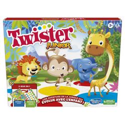 Les tout-petits vont bien s'amuser avec le jeu Twister Junior, une aventure avec thème de safari qui évolue avec eux ! Ce jeu amusant pour enfants à partir de 3 ans procure 2 niveaux de jeu grâce à son tapis et à sa roulette réversibles. Au niveau 1, avec le côté Safari du tapis, les enfants font to