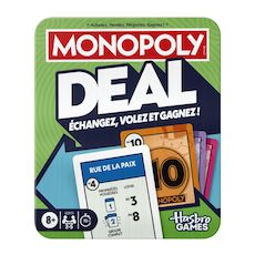 JEU DE CARTES MONOPOLY DELUXE DANS UNE BOÎTE EN MÉTAL : facile à jouer et à emporter partout ! Cette édition spéciale du jeu de cartes Monopoly Deal est vendue dans une boîte en métal premium