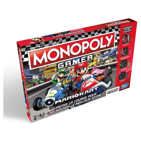 Retrouve l'univers du célèbre jeu Monopoly dans sa version Gamer ! Retrouve tous les éléments de tes jeux préférés, comme les pions qui sont des personnages de jeux (Mario, Peach, Donkey-Kong et Yoshi), les pièces d'or comme dans tes jeux et un plateau exclusif avec des noms de rues tirées de l'univ