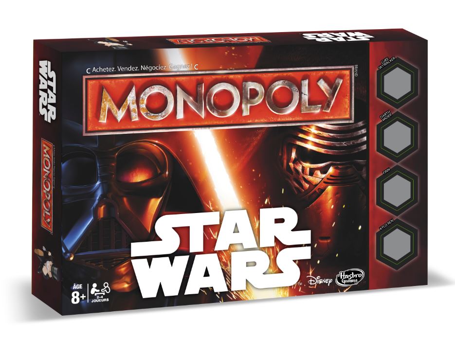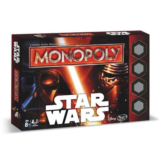 Voici la dernière version du Monopoly Star Wars de Hasbro. Les règles restent toujours les mêmes que le monopoly classique mais les rues sont remplacées par des galaxies ! Que la force soit avec vous !