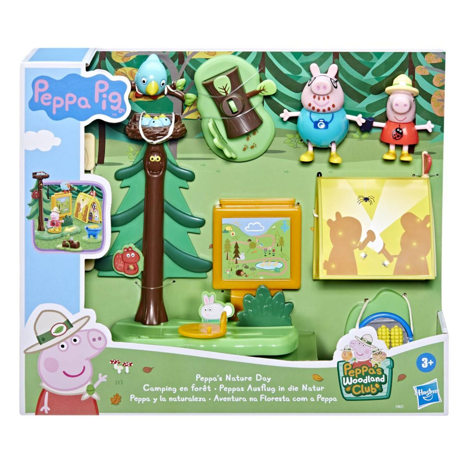 Partez au camping avec le Coffret Peppa et Papa Pig ! Avec des personnages emblématiques et des accessoires réalistes, ce coffret offre une expérience de jeu immersive au petit. Créez une merveilleuse aventure avec Peppa et Papa Pig dans la forêt. Le kit de jeu contient une figurine de Peppa de 7,5 cm, une figurine de Papa Pig de 12,5 cm et 5 autres accessoires. Le sentier propose une plateforme sur laquelle les enfants peuvent placer une figurine pour faire sortir un lapin des buissons. Le tronc d'arbre dispose également d’une feuille sur laquelle il est possible de presser pour faire sortir un papillon et des coccinelles. Une tente, une grille réversible pour alterner entre deux aliments et une table à pique-nique accueillant deux figurines sont incluses dans le lot.
