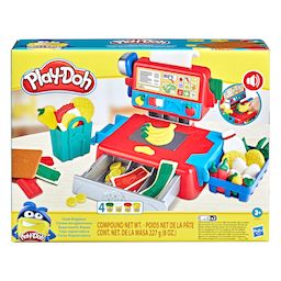 - Inclut jouet caisse enregistreuse électronique, tampon portatif à code barre, 1 panier, 1 moule à charnières en forme de portefeuille, 5 emporte-pièces d'aliment, 1 sac d'épicerie, 1 rouleau, 1 couteau en plastique et 4 pots de pâte à modeler Play-Doh.
