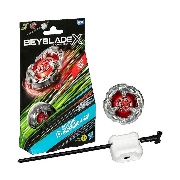 Le Beyblade X, Starter Pack Scythe Incendio 4-60T de Hasbro est une toupie de compétition idéale pour les passionnés. Ce pack comprend une toupie équilibrée avec un design dynamique et performant en plastique de haute qualité, ainsi qu'un lanceur inclus pour des lancers précis. Avec une hauteur de 6