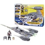 Pour revivre les aventures du Mandalorien: Vaisseau Star Fighter N1 équipé de réacteurs lumineux et de lance missiles et figurine articulée de 10 cm du Mandalorian avec son sac à dos et sa cape amovibles.