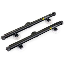 Lot de deux pare-soleil enrouleurs, ajustement de la hauteur du store multipositions. 37 cm de largeur. Bouton à presser pour remonter automatiquement le store. La fixation s'effectue soit à l'aide des deux clips de fixation directement sur la vitre du véhicule ou à l'aide de ventouses ultra-aspirantes.