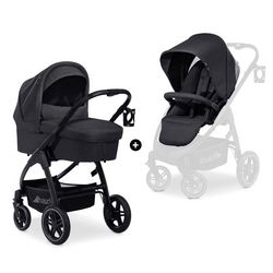Le kit 2 en 1 avec poussette et nacelle Saturn R Duoset vous accompagne partout dès la naissance de votre enfant. La poussette peut supporter jusqu’à 25 kg (enfant de 22 kg et panier de 3 kg). Les roues tout-terrain en caoutchouc vous permettent de vous déplacer partout. Le châssis en aluminium haut de gamme, robuste et stable de la poussette hauck fera de chaque déplacement un pur plaisir. La poignée télescopique réglable et agréable au toucher offre de l’espace pour les jambes, ménage votre dos et facilite vos déplacements.