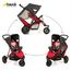 Poussette double 3 roues facile à manier pour les promenades de jumeaux ou d'enfants d'âges rapprochés. Le + produit: poussette 2 en 1 double ou simple: l'assise arrière se déboite pour une utilisation en poussette simple.