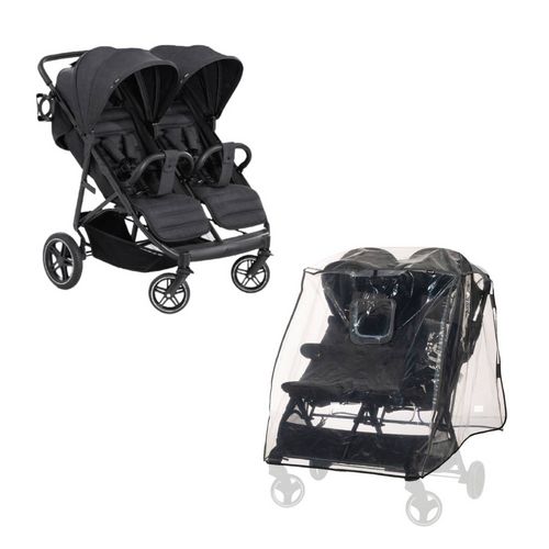 Poussette double Uptown Duo Noir + Habillage pluie pour poussette Pushchair Raincover Duo