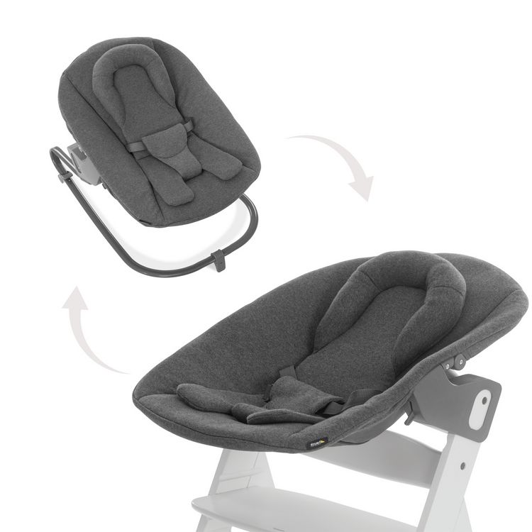 Haut de gamme, maniable et flexible, le transat Alpha Bouncer Premium peut être utilisé comme module pour nouveau-nés sur les chaises hautes en bois Alpha+ et Beta+ (vendues séparément) ou être installé sur le support de transat inclus.
