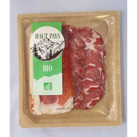 Jambon sec bio*: jambon de porc*, sel, conservateur: