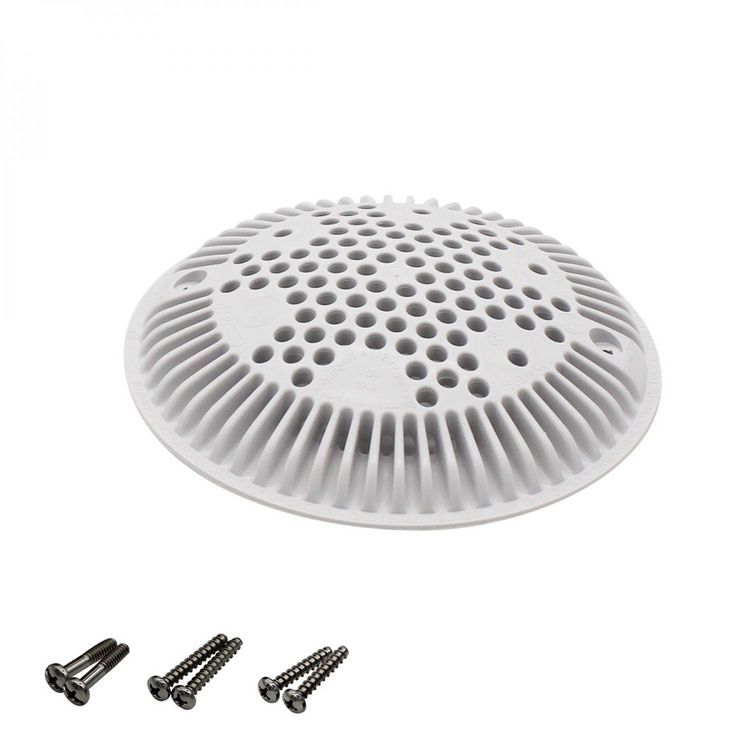 Grille bonde de fond ronde bombée avec vis pour piscine - Diam 19,5 cm - Blanc - WGX1048E