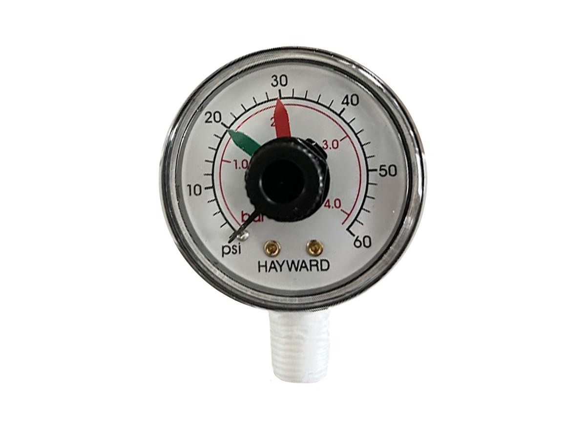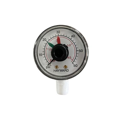 Le manomètre pour filtres à sable Top ou Side de Hayward est un accessoire de mesure de la pression utilisé pour les filtres à sable de la marque Hayward. Il permet de mesurer la pression hydraulique de votre système de filtration, vous indiquant ainsi si votre pompe fonctionne correctement, si votre filtre est encrassé, ou s'il y a de l'air dans le circuit.
